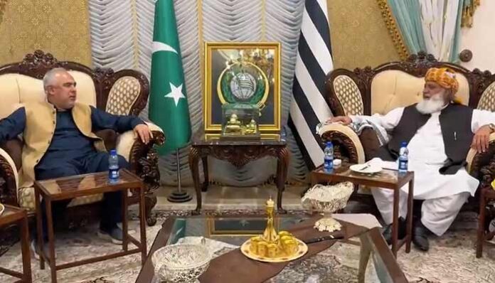 جے یو آئی (ف) کے جاری کردہ بیان کے مطابق، سابق اسپیکر قومی اسمبلی اسد قیصر کی قیادت میں پی ٹی آئی وفد — جس میں خیبر پختونخوا کے صدر جنید اکبر اور شاہرام ترکئی شامل تھے — نے مولانا فضل الرحمان سے ان کی رہائش گاہ پر ملاقات کی۔