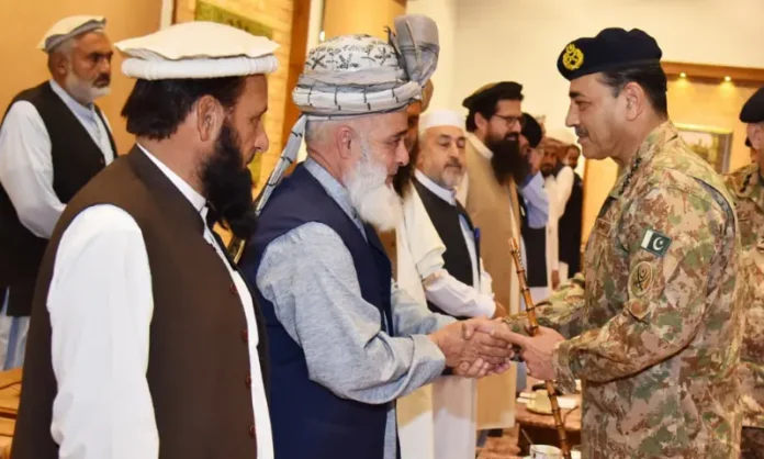 آرمی چیف نے قبائلی عمائدین کو یقین دلایا کہ پاکستان، بالخصوص خیبر پختونخوا، کو دہشت گردوں اور ان کے سہولت کاروں سے مکمل طور پر پاک کیا جائے گا۔ انہوں نے دہشت گردی کے خلاف جنگ میں قبائلی عوام کی قربانیوں اور بہادری کو سراہا۔