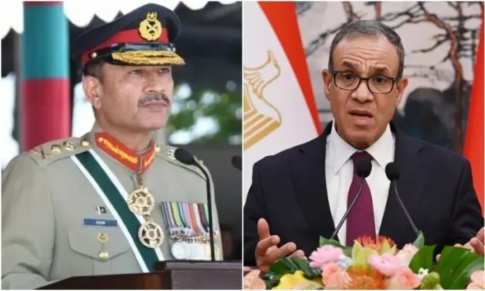 اتوار کو جنرل ہیڈکوارٹرز (جی ایچ کیو) میں وزیر خارجہ نے چیف آف آرمی اسٹاف فیلڈ مارشل عاصم منیر سے ملاقات کی۔ دفتر خارجہ کے بیان کے مطابق دونوں ممالک نے عسکری سطح پر مشترکہ مشقیں، تربیتی پروگرام، سیکیورٹی تعاون اور خطے کے امن و استحکام کے لیے مستقل رابطوں کو ناگزیر قرار دیا۔ فریقین اس بات پر متفق ہوئے کہ پاکستان اور مصر کی افواج کے درمیان براہِ راست اور مسلسل رابطہ مستقبل کے دفاعی کردار کو مزید مضبوط بنائے گا۔