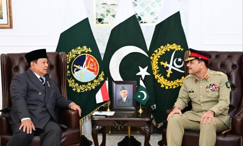 بعد ازاں انڈونیشین صدر نے فیلڈ مارشل سید عاصم منیر سے ملاقات کی۔ آئی ایس پی آر کے مطابق ملاقات میں باہمی دلچسپی کے امور، علاقائی سلامتی اور دفاعی تعاون پر تبادلۂ خیال کیا گیا۔