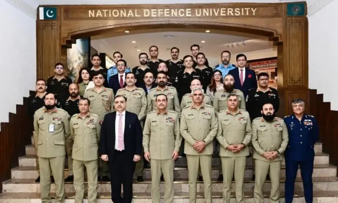آئی ایس پی آر کے مطابق، نیشنل ڈیفنس یونیورسٹی اسلام آباد کے دورے کے دوران فیلڈ مارشل کو نیشنل سکیورٹی اور وار کورس میں شریک سول و عسکری افسران نے قومی سلامتی کو درپیش چیلنجز پر اپنی تعلیمی آرا سے آگاہ کیا۔